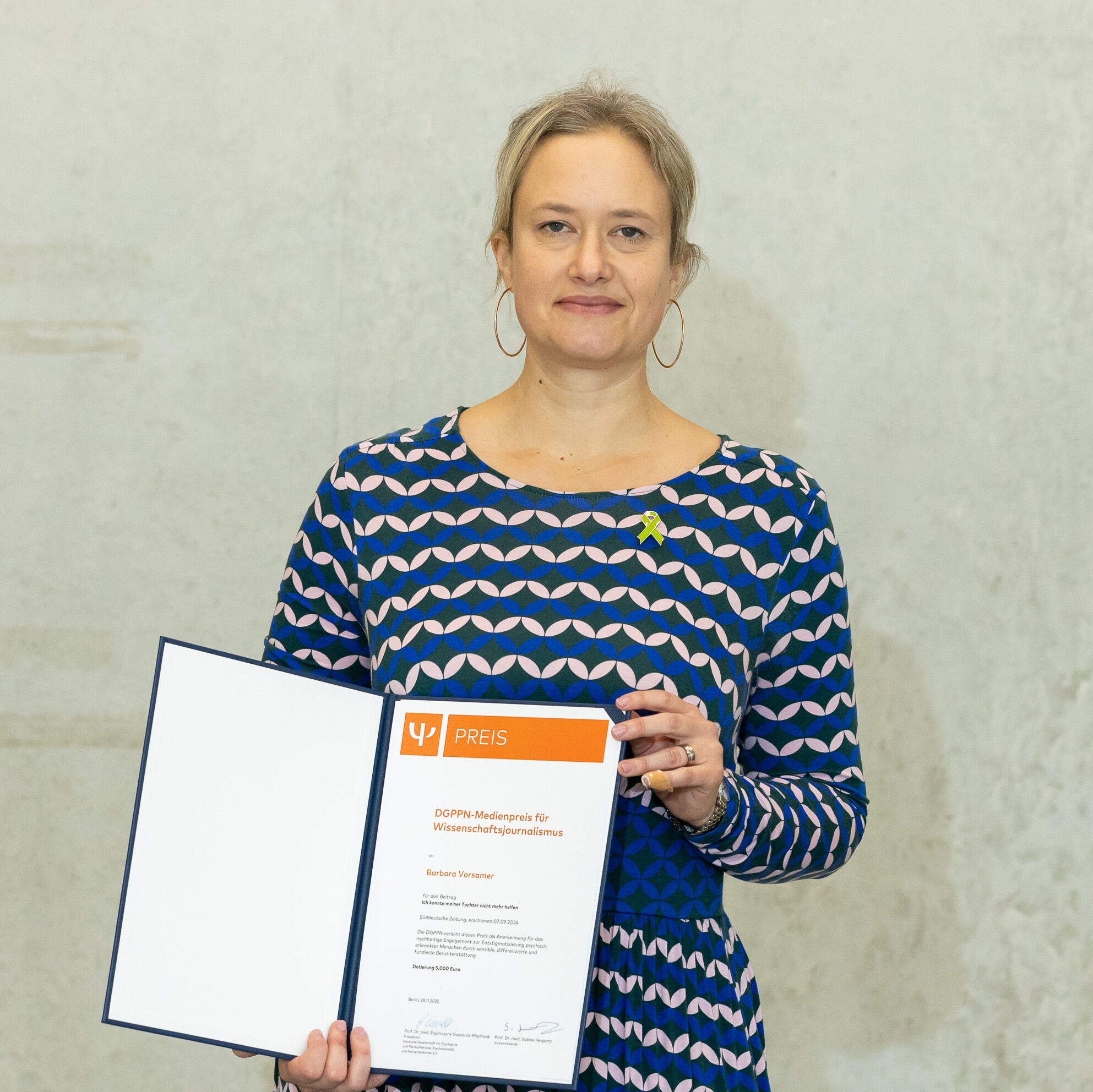 Barbara Vorsamer wird mit dem Medienpreis ausgezeichnet für Ihren Beitrag "Ich konnte meiner Tochter nicht mehr helfen" - eine Reportage über die Familie einer an einer Psychose erkrankten Frau.