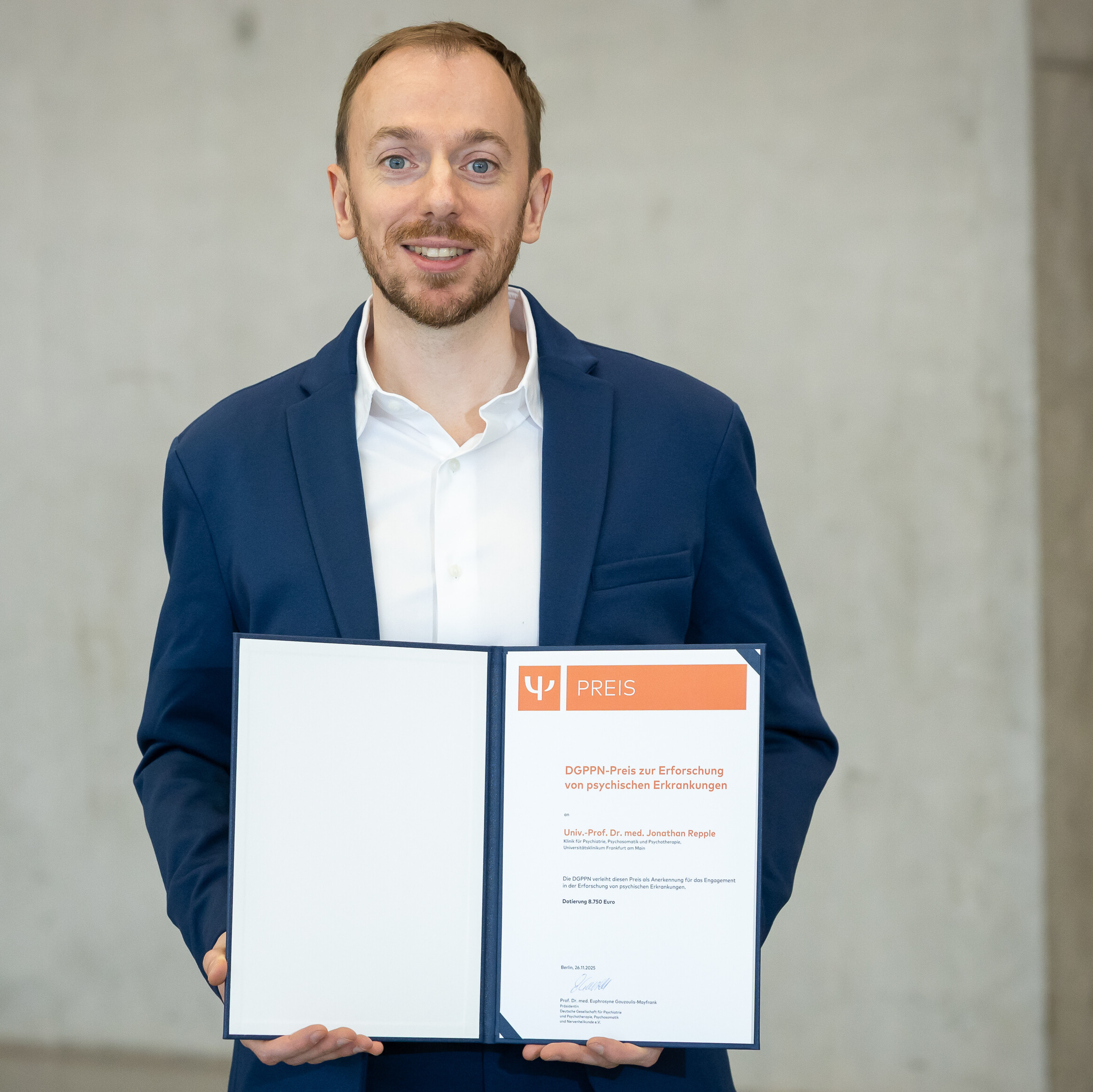 Forschungspreis für prädiktive, präventive und personalisierte Medizin in Psychiatrie und Neurologie 2023: Prof. Dr. Jonathan Repple © DGPPN | MH