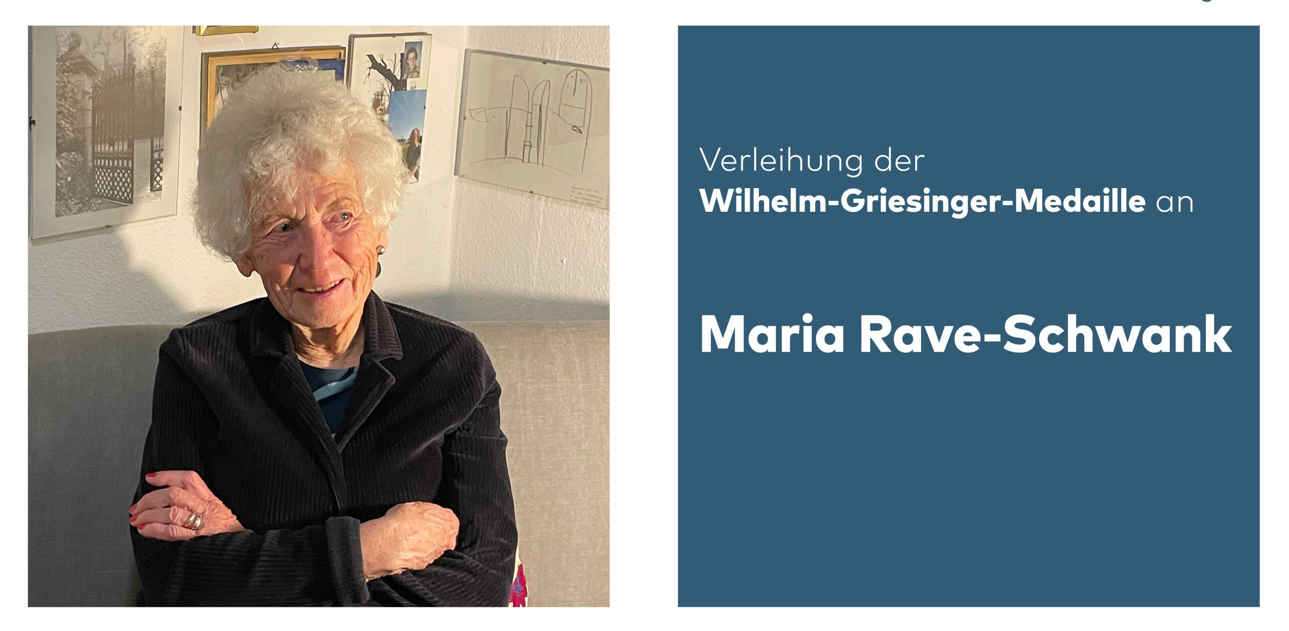 Dr. Maria Rave-Schwank erhält die Wilhelm-Griesinger-Medaille für besondere Verdienste rund um die Psychiatrie und Psychotherapie. Die 1935 geborene Fachärztin für Psychiatrie und Psychotherapie war Mitglied der Psychiatrie-Enquete und hat die Versorgung und das Selbstverständnis der Psychiatrie in Deutschland entscheidend mitgeprägt.