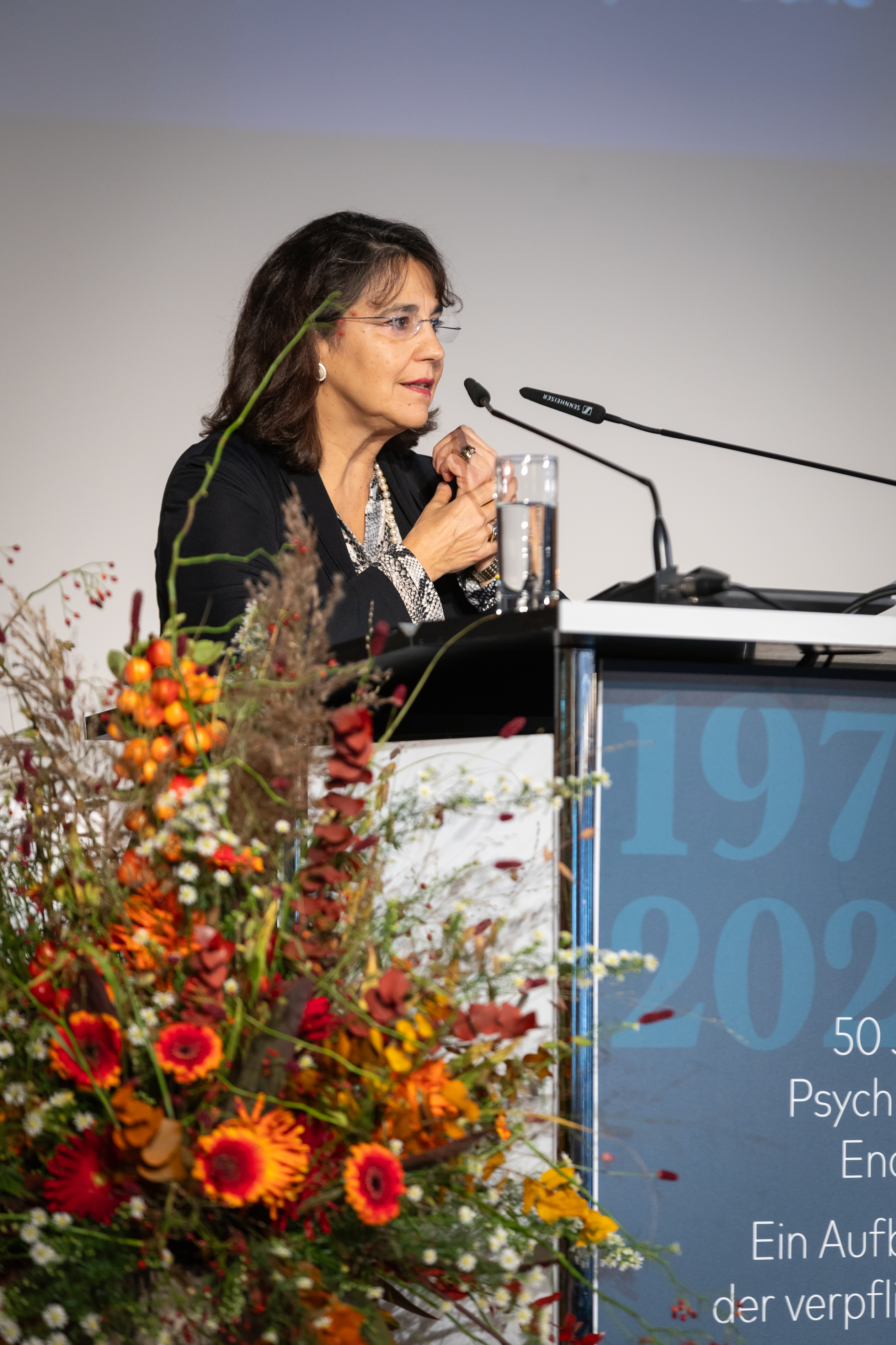 Die Veranstaltung bot vielfältige Gelegenheiten für den Austausch zwischen Fachleuten, Betroffenen und politischen Vertreterinnen und Vertretern, nicht nur auf dem Podium. „Der Dialog zwischen allen Beteiligten ist entscheidend, um die psychiatrische Versorgung weiter zu verbessern“, betonte Prof. Dr. Gouzoulis-Mayfrank abschließend. „Nur wenn Fachleute, Politik und Gesellschaft wie vor 50 Jahren an einem Strang ziehen und den Reformen Priorität einräumen, können wir die psychiatrisch-psychotherapeutische Versorgung nachhaltig zukunftsfähig machen.“