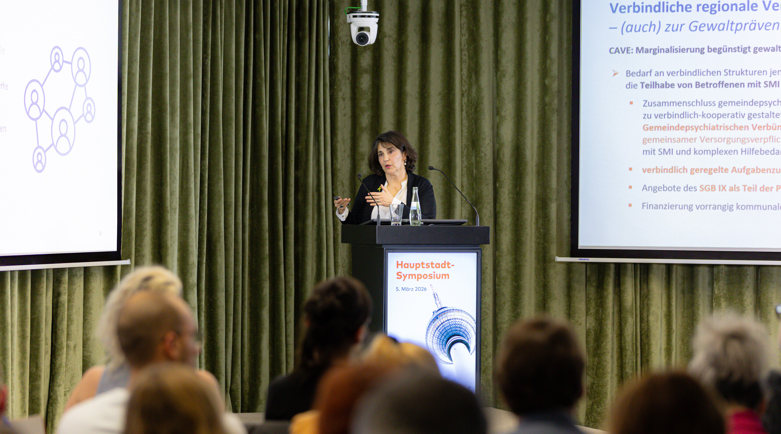 Die in Berlin stattfindende Veranstaltungsreihe Hauptstadtsymposium der Deutschen Gesellschaft für Psychiatrie und Psychotherapie, Psychosomatik und Nervenheilkunde (DGPPN) war am gestrigen Abend mit 130 Teilnehmenden nicht nur vor Ort ausgebucht; auch die knapp 400 zugeschalteten Teilnehmenden im Livestream verdeutlichten einmal mehr die Relevanz des Themas der Prävention von Gewalttaten durch Menschen mit psychischen Erkrankungen. Neben Vertretern aus Landes- und Bundespolitik, von Fachgesellschaften und Berufsverbänden waren vor allem zahlreiche Fachexperten aus Kliniken, Gesundheitsämtern, Maßregelvollzugseinrichtungen sowie von Sozialpsychiatrischen Diensten unter den Teilnehmenden vertreten. Diese große Resonanz über alle Berufsgruppen hinweg verdeutlicht den Bedarf an evidenzbasiertem Austausch zu einem medial doch sehr präsenten Thema. Die DGPPN hatte sich schon im vergangenen Jahr intensiv mit diesem Thema befasst und im Sommer 2025 das Positionspapier zur Prävention von Gewalttaten veröffentlicht.